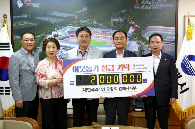 (아름다운교육신문) (사)한국외식업중앙회 김해시지부는 부지부장 및 사무국장과 함께 지난 19일 김해시를 방문하여 관내 어려운 이웃들에게 도움이 되길 바란다며 성금 200만을 기탁했다.