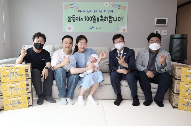 박병규 광산구청장은 “광산구에 축복처럼 와준 세쌍둥이와 부모님의 100일을 진심으로 축하드린다”며 “부모의 부담과 걱정은 덜고, 아이를 낳고 기르는 행복은 배로 높이는 광산구를 만들기 위해 더욱 열심히 노력하겠다”고 말했다.