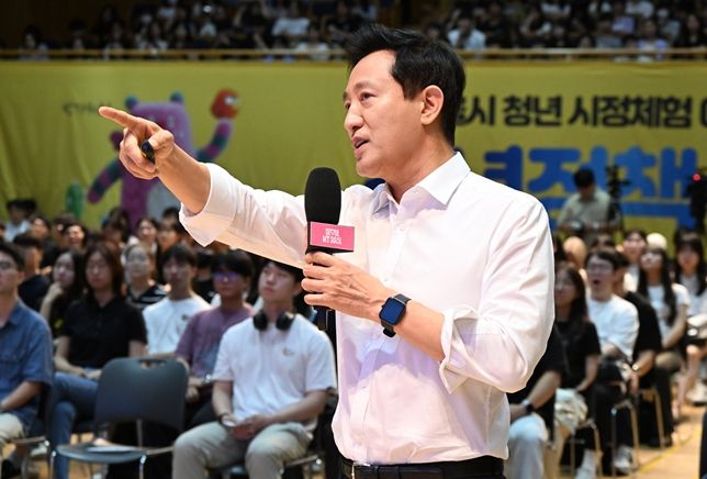 (아름다운교육신문) 오세훈 서울시장이 19일 10시, 서울시청 8층 다목적홀에서 ‘청년 시정체험 아르바이트’ 근무자를 만나 서울시 청년정책에 대해 강연하고, 청년들의 고민과 제안을 청취·응답하는 시간을 가졌다.