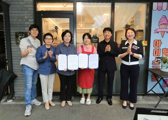 이날 행사에는 신계용 과천시장과 김별 올웨이즈쿠잉 대표, 홍용학 원문동 지역사회보장협의체 민간위원장, 고석철 원문동장 등 5명이 참여해 기부 협약을 맺고, 나눔가게를 알리는 현판식을 가졌다.