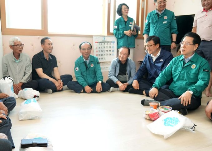 김영록 지사가 이날 방문한 모정마을은 산사태 취약지역으로 지난 5월 10일 경찰·소방·면사무소·지역주민 등 30여 명이 산사태 재난대비 훈련을 실시한 곳으로, 유사시 유관기관 협조체계에 따라 선제적 주민 대피 대응 태세를 갖추고 있다.