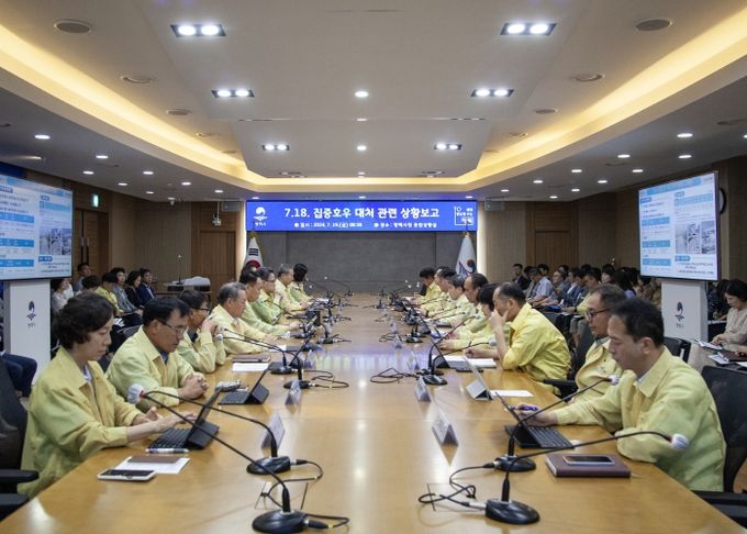 (아름다운교육신문) 평택시는 19일 집중호우 대처 관련 상황보고회를 시장 주재로 개최했다. 관련 부서별로 대처 상황을 공유하고 각 분야 중점 추진사항 및 대응계획을 발표했다. 또한 빠른 일상으로의 회복을 위해 가능한 7월 말까지 행정력을 집중하여, 각 읍면동에 피해조사를 위한 인력을 보강하고, 평택시 간부 공무원 전원은 주말을 반납하고 피해복구 현장점검에 나선다. 이어 다음 주중 호우 피해 복구 상황의 점검 회의를 개최하여 주요 시설의 복구 및 조치 계획에 관하여 추가 논의하고, 극한의 국지성 폭우에 맞는 침수 예방대책 수립에 대하여 구체적으로 논의할 예정이다.