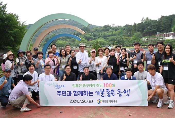 (아름다운교육신문) 김제선 중구청장이 지난 20일 취임 100일을 맞아 새로운 구정 구호인‘주민과 함께 주민 속으로’의 실현을 위해 중구 뿌리공원에서 구민 30여 명과 함께‘주민과 함께하는 기분좋은 동행’을 추진했다.