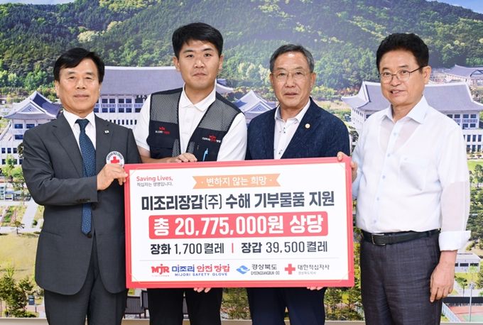 이철우 경상북도지사는 “호우피해 복구지원을 위해 도움을 주신 백억현 대표님께 깊이 감사드린다”며, “보내주신 귀중한 장갑 등 구호 물품은 적십자사에 맡겨 필요한 시군으로 전달해 유용하게 사용하겠다”고 말했다.