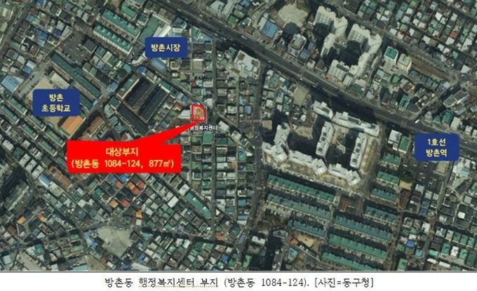 방촌동 행정복지센터는 현 부지인 방촌동 1084-124번지에 사업비 약 68억원을 투입해 연면적 1천650㎡ 규모로 지을 예정이다. 지하 1층 ~ 지상 4층에 민원실과 주민자치센터 프로그램실, 주민공용공간, 회의실, 예비군동대 등을 갖춘다.