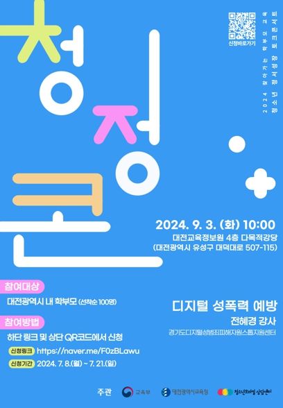 대전광역시교육청 양수조 미래생활교육과장은 “최근 디지털 성폭력에 대한 사회적 우려가 큰데, 예방보다 확실한 재발방지대책은 없기에 학부모를 대상으로 디지털 성폭력 예방교육*도 실시할 예정이다.”라며, “ 우리 학생들이 성폭력으로부터 안전하게 생활할 수 있도록 다양한 예방자료 개발‧보급은 물론 교육청-가정의 긴밀한 협력을 통해 학