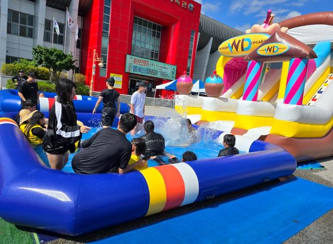 청소년들은 안전 교육을 받고 준비 운동을 한 후 에어바운스와 워터 슬라이드에서 각 50분씩 차례로 물놀이를 즐겼다.