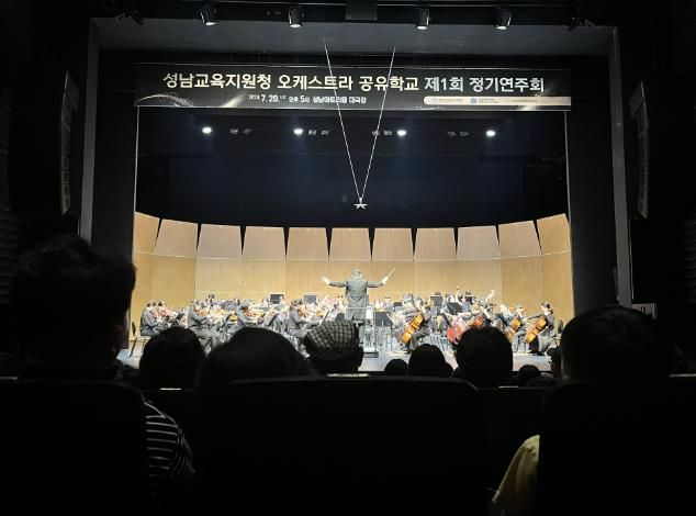 성남교육지원청은 7월 20일, 성남아트리움 대극장에서 ‘성남교육지원청 오케스트라 공유학교’ 제1회 정기연주회를 개최했다. 궂은 날씨에도 성남 교육 가족들이 600석을 가득 채웠다.