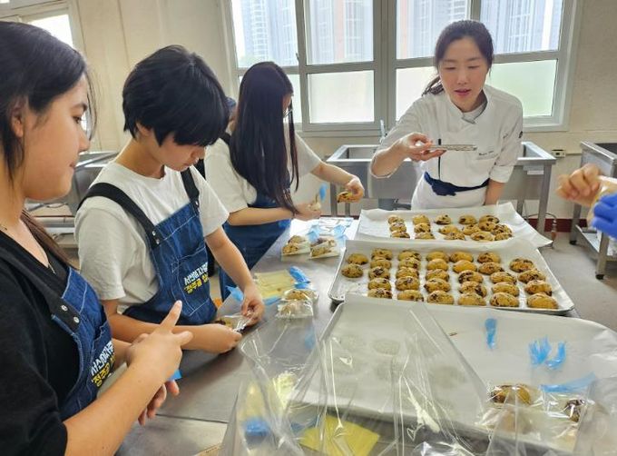 양일 간 학생들은 여름방학을 맞이하여 가정에서 활용할 수 있는 간단한 제과기능과 양·한식 조리과정, 그리고 주방에서 바로 사용할 수 있는 나무 도마도 직접 디자인하고 만들어보는 체험을 했다.