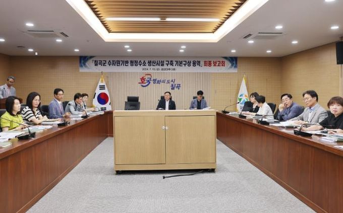 (아름다운교육신문) 칠곡군은 지난 7월 19일, 김재욱 칠곡군수를 비롯한 관계 공무원 등 30여 명이 참석한 가운데 ‘칠곡군 수자원기반 청정수소 생산시설 구축 기본구상 용역’의 최종보고회를 개최했다.