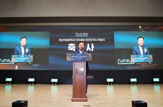 이날 취임식에서 권진회 총장은 Fly with GNU, 혁신을 이끄는 국가거점국립대학의 리더’라는 비전으로 ‘혁신하는 대학, 성장하는 대학, 행복한 대학으로 거점 국립대 Top.3 진입’의 포부를 밝혔다.