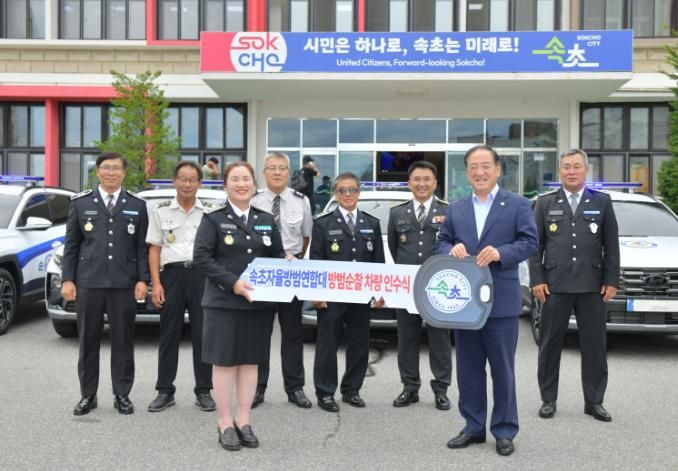 (아름다운교육신문) 속초시는 7월 22일 속초시청 광장에서 시민안전・범죄예방을 위해 각종 방범 서비스를 제공하고 있는 속초자율방범대의 신규 방범순찰차량 5대에 대한 인수식을 개최했다.