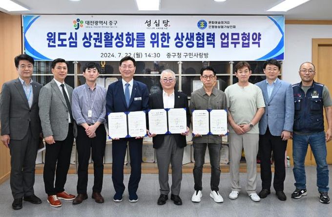 (아름다운교육신문) 대전 중구는 22일 로쏘(주) 성심당, 문화예술의거리 은행동상점가 상인회와 원도심 상권 활성화를 위한 업무협약을 체결했다고 밝혔다.