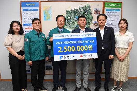 (아름다운교육신문) 전북은행이 폭염 취약계층을 위해 완주군에 250만 원 상당의 ’시원(COOL) 키트‘ 60상자를 전달했다.
