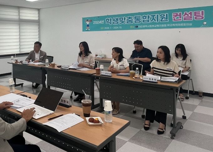 (아름다운교육신문) 대전광역시동부교육지원청은 7월 22일 14:00, 대전동부교육지원청 학교폭력제로 회의실에서 시범교육지원청 여건에 적합한 학생맞춤통합지원 체제 구축 및 운영의 최적 대안을 모색하기 위한 맞춤형 컨설팅을 받았다고 밝혔다.
