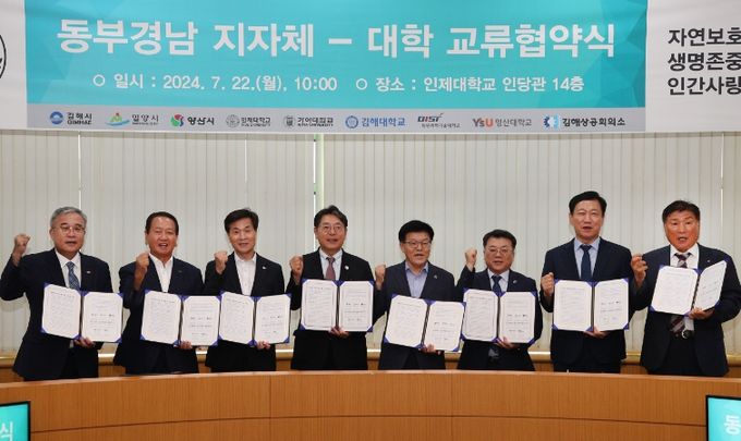 (아름다운교육신문) 밀양시는 22일 인제대학교 인당관에서 동부경남 지자체·대학(김해시, 양산시, 인제대, 가야대, 김해대, 영산대, 동원과학기술대)등 7개 기관과 함께‘동부경남 지자체-대학 협력 및 교류 협약’을 체결했다고 밝혔다.