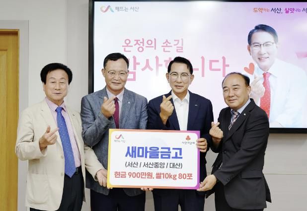 (아름다운교육신문) 충남 서산시는 22일 서산새마을금고, 서산중앙새마을금고, 대산새마을금고 등 새마을금고 3개 지점에서 어려운 이웃을 위한 성금 900만 원과 쌀 80포(200만 원 상당)를 기탁했다고 밝혔다.