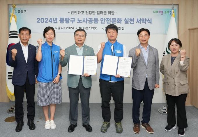 (아름다운교육신문) 중랑구가 18일 중랑구청 임직원의 재해예방을 위해 서울특별시 중랑구청 공무원노조와 노사공동 안전문화 실천 서약식을 개최했다.