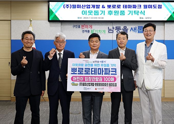 (아름다운교육신문) 인천시 남동구는 최근 ㈜월미산업개발과 뽀로로테마파크 월미도점으로부터 240만 원 상당의 어린이 입장권 100매를 기탁받았다고 23일 전했다.