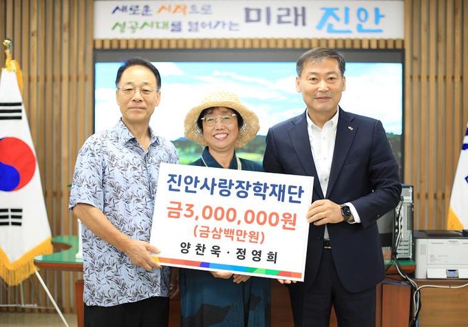 (아름다운교육신문) 진안군 부귀면 주민 양찬욱·정영희 부부가 23일 진안군수실을 찾아 진안사랑장학재단에 장학금 3백만원을 기부했다.