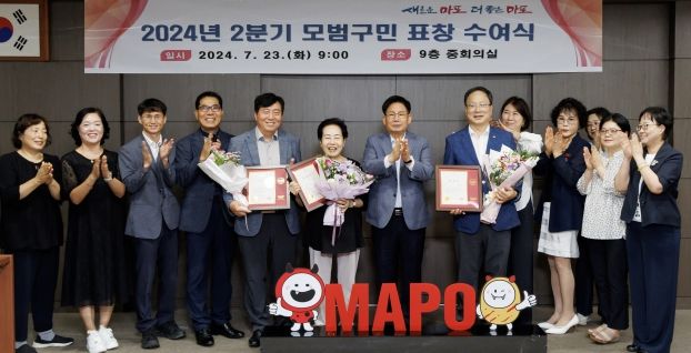 (아름다운교육신문) 마포구는 23일 오전, 마포구청 중회의실에서 ‘2024년 2분기 모범구민 표창장 수여식’을 개최했다.