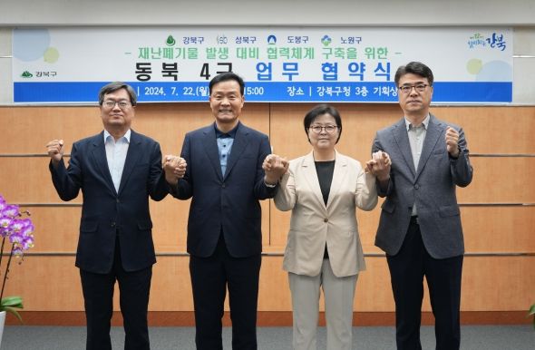 (아름다운교육신문) 서울 강북구는 22일 강북구청 기획상황실에서 ‘재난폐기물 발생 대비 협력체계 구축을 위한 동북4구 업무협약’을 체결했다고 밝혔다.