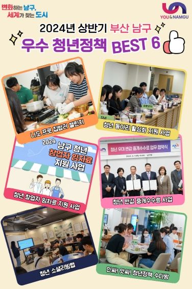 (아름다운교육신문) 부산 남구는 2025년 청년정책 사업 구상을 위해 올해 사업을 점검하면서'2024년 상반기 남구만의 우수한 청년 정책 베스트 6'을 소개했다.