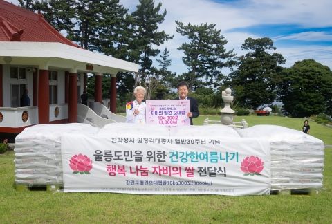 “또한, 어려운 이웃들이 폭염과 폭우로 힘든 시기 따뜻한 정성의 한 끼를 드리고 싶은 마음으로 2023년도(진각성존회당대종사님의 열반 60주년)에 이어 ‘울릉군민을 위한 건강한 여름나기 행복나눔 자비의 쌀’을 준비한 만큼, 형편이 어려운 사각지대 취약 가구에 쌀이 전달됐으면 좋겠다.”라고 밝혔다.