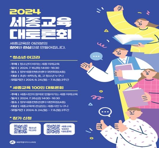 (아름다운교육신문) 세종특별자치시교육청은 7월 26일 14시에 정부세종컨벤션센터 4층 대연회장에서 ‘2024년 세종교육 100인 대토론회’를 개최한다.