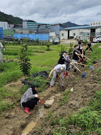 이정열 중부대 총장을 비롯해 중부대 항공서비스학전공 학생 및 교수, 직원 등 40여 명은 추부면 일원 농가를 찾아 배수로의 흙과 쓰레기를 치우고 모종 심기를 도왔다.