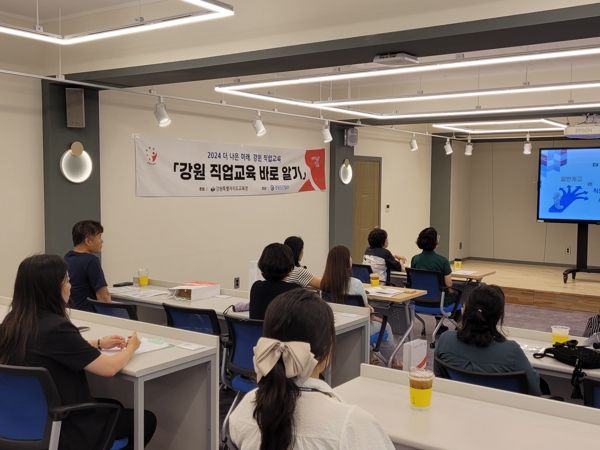 (아름다운교육신문) 강원특별자치도교육청과 강원도민일보가 7월 10일부터 24일까지 도내 중학교 교감과 진로 및 입시 담당 교원, 교육지원청 업무 담당 장학사 등 총 80여 명을 대상으로 ‘2024 직업교육 바로 알기’ 프로그램을 4회에 걸쳐 운영했다.