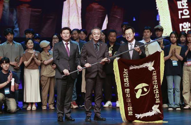 ‘제42회 대한민국연극제 용인’ 폐막식에는 대회장인 이상일 용인특례시장과 명예대회장 이순재 배우, 유인촌 문화체육관광부 장관, 손정우 대한민국연극제 조직위원장, 한원식 대한민국연극제 집행위원장이 참석했다.