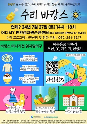 (아름다운교육신문) 광주 동구는 오는 27일 산수동 친환경자원순환센터에서 ‘제1회 자원순환 수리 바캉스’를 개최한다고 밝혔다.
