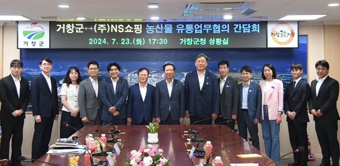 (아름다운교육신문) 거창군은 지난 23일 구인모 거창군수, 조항목 ㈜엔에스쇼핑 대표이사 등 관계자, 오승철 ㈜열매나무 대표이사 등 관계자 13명이 참석한 가운데 군의 농특산물의 마케팅 협력을 강화하기 위한 거창군과 (주)엔에스쇼핑 농산물 유통업무협의 간담회를 개최했다.