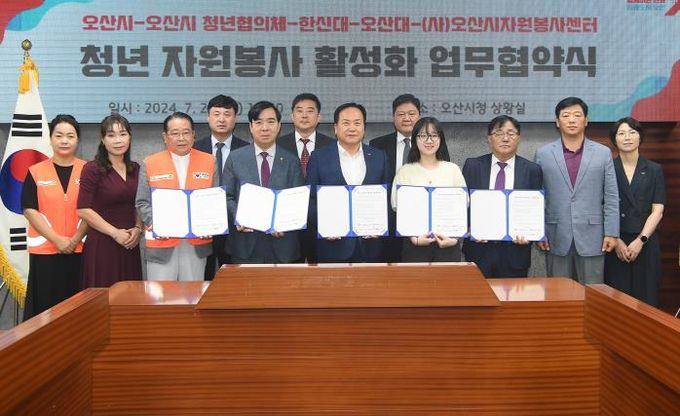 (아름다운교육신문) 오산시는 23일 시청 상황실에서 오산시 청년협의체, 한신대학교, 오산대학교, (사)오산시자원봉사센터 등 5개 기관과 '청년 자원봉사 활성화를 위한 업무협약'을 체결했다.