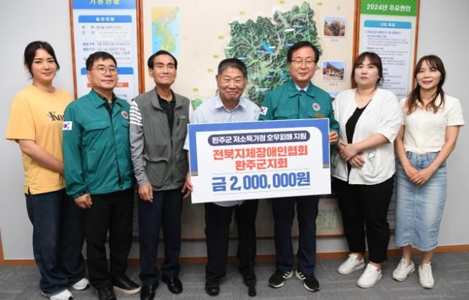 (아름다운교육신문) 전북지체장애인협회 완주군지회가 완주군 집중호우 피해 주민들을 위해 써달라며 성금 200만 원을 기탁했다.
