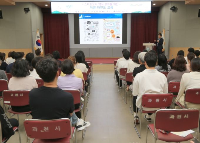 (아름다운교육신문) 과천시가 최근 ‘2030 스마트도시계획’ 수립을 위한 용역에 본격 착수한 가운데, 24일 시청 대강당에서 공직자 100여 명을 대상으로 ‘스마트도시 실현을 위한 직원 역량 강화 교육’을 실시했다.