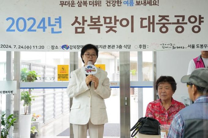 이순희 강북구청장은 “복날을 맞아 보양식을 마련해 이웃과 함께 나눔해주시는 화계사와 서울 도봉우체국 등에게 감사드린다”며 “강북구는 앞으로도 장애인과 어르신들이 건강하고 즐겁게 생활하실 수 있도록 관심과 지원을 아끼지 않겠다”고 말했다.