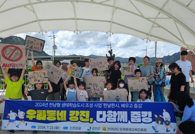 (아름다운교육신문) 강진군은 지난 23일, 신전면 아동센터에서 ‘찾아가는 생태환경 양성 과정’ 수료자와 신전면 아동센터 어린이 23명이 참가한 가운데, ‘우리 동네 강진, 다함께 줍깅 캠페인’을 추진했다.