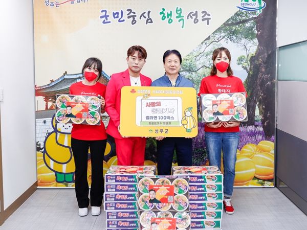 (아름다운교육신문) 대구와 경북을 포함해 전국적으로 공연 활동을 펼치고 있는 트로트 가수 “황태자”가 7월 24일 성주군청을 방문해 저소득 아동을 위해 지원해 달라며 컵라면 100박스를 기탁했다.