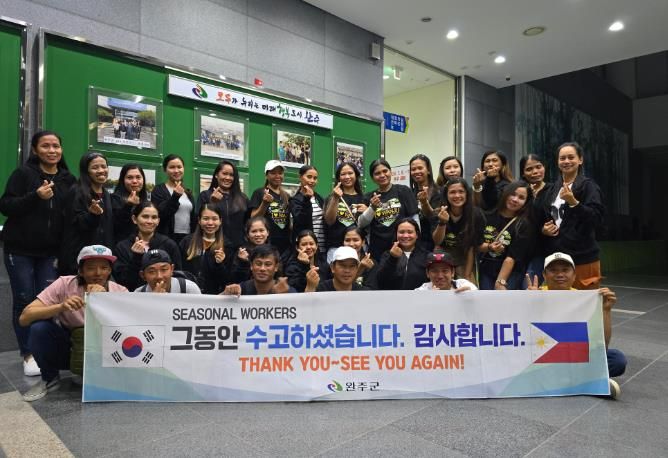(아름다운교육신문) 지난 24일 필리핀 3개 지자체(이사벨라주, 랄로시, 미나시) 출신 외국인 계절근로자 28명이 완주군에서 성실히 근로를 마치고 출국했다.