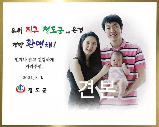 아이의 탄생은 기쁨과 행복, 기대감과 특별한 감정을 불러일으킨다. 청도군에서는 이러한 감정들을 자신의 사랑하는 가족, 이웃과 나누고 따뜻한 즐거움과 잊을 수 없는 추억을 선사하기 위하여 아이와 엄마, 아빠가 함께 찍은 사진을 기념패에 담아 제작하여 전달할 예정이다.
