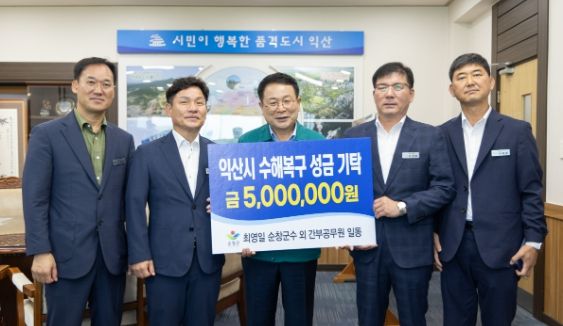 (아름다운교육신문) 익산시는 25일 순창군에서 수해복구 활동을 위한 성금 500만 원을 기탁했다고 밝혔다.