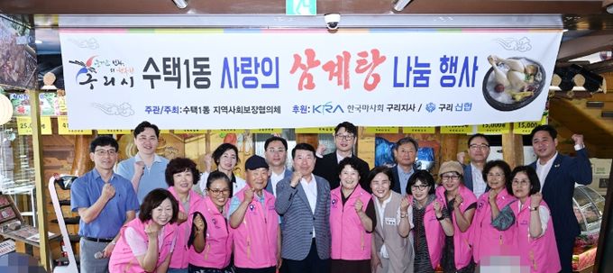 이번 행사를 위해 수택1동 지역사회보장협의체 위원들이 성금을 모아 삼계탕과 과일, 떡을 준비했다. 아울러, 한국마사회 구리지사(지사장 신종택)에서 김을, 구리 신협(이사장 지유봉)에서 국수를 선물로 전달하며 행사를 더욱 풍성하게 만들었다.