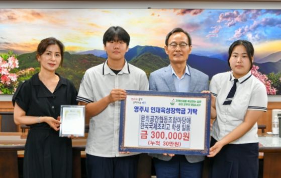 영주시인재육성장학회 박남서 이사장은 “지역 인재 육성을 위해 판매 수익금을 기탁해 준 학생들의 예쁜 마음을 기억하겠다”며 “학생들의 소중한 마음이 장학사업에 녹아들 수 있도록 노력하겠다”고 말했다.