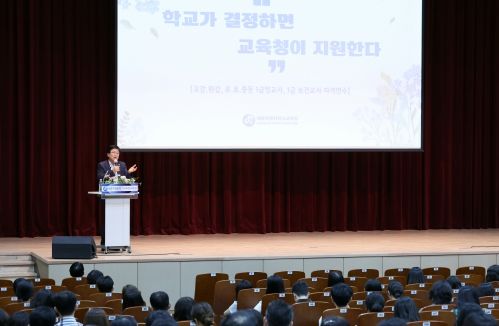 최교진 교육감은 ‘학교가 결정하면 교육청이 지원한다.’라는 주제로 강의를 진행하여 ▲모두가 특별해지는 세종교육의 의미와 ▲학교 자치에 관한 이해도를 높였다.