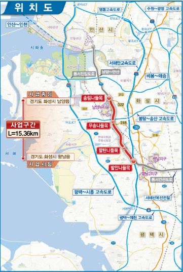 발안~남양 고속화도로는 화성시 남북축 간선도로망 보완과 내부순환도로망 구축을 위한 노선 중 하나로, 화성시 향남읍 상신리에서 남양읍 송림리를 연결하는 총사업비 4,463억 원, 총 길이 15.36km 규모의 왕복 4차선 자동차 전용도로이다.