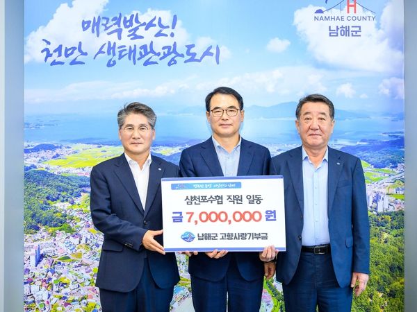 정도근 삼천포수협 조합장을 비롯한 직원 70명은 지역간 균형발전과 지역경제 활성화를 위한 응원의 마음을 담아 남해군 고향사랑기부에 동참하게 됐다.