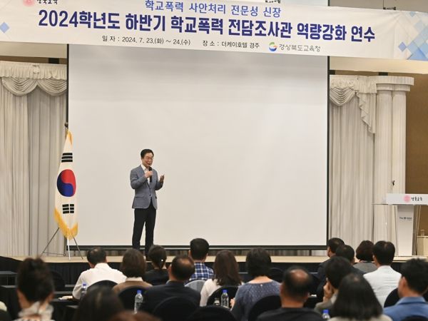 (아름다운교육신문) 경북교육청은 23일 경주시에 있는 더케이호텔경주에서 학교폭력 전담조사관 100여 명을 대상으로 2024학년도 하반기 학교폭력 전담조사관 역량 강화를 위한 연수를 실시했다.