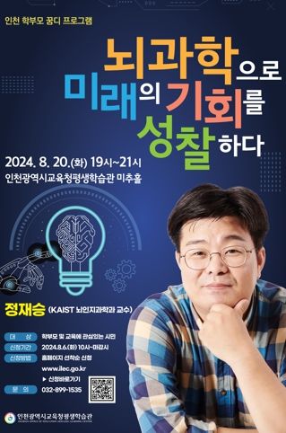 (아름다운교육신문) 인천광역시교육청평생학습관은 관내 학부모 및 관심 있는 시민을 대상으로 정재승 카이스트 교수를 초청해 ‘학부모 꿈디 프로그램’ 특별강연을 8월 20일 개최한다.